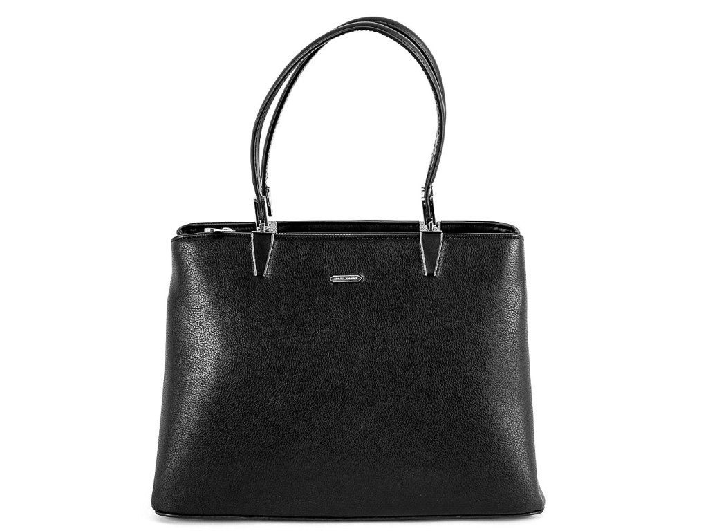 Středně velká kabelka značky David Jones v klasické černé barvě upoutá svojí elegancí a nadčasovým vzhledem.