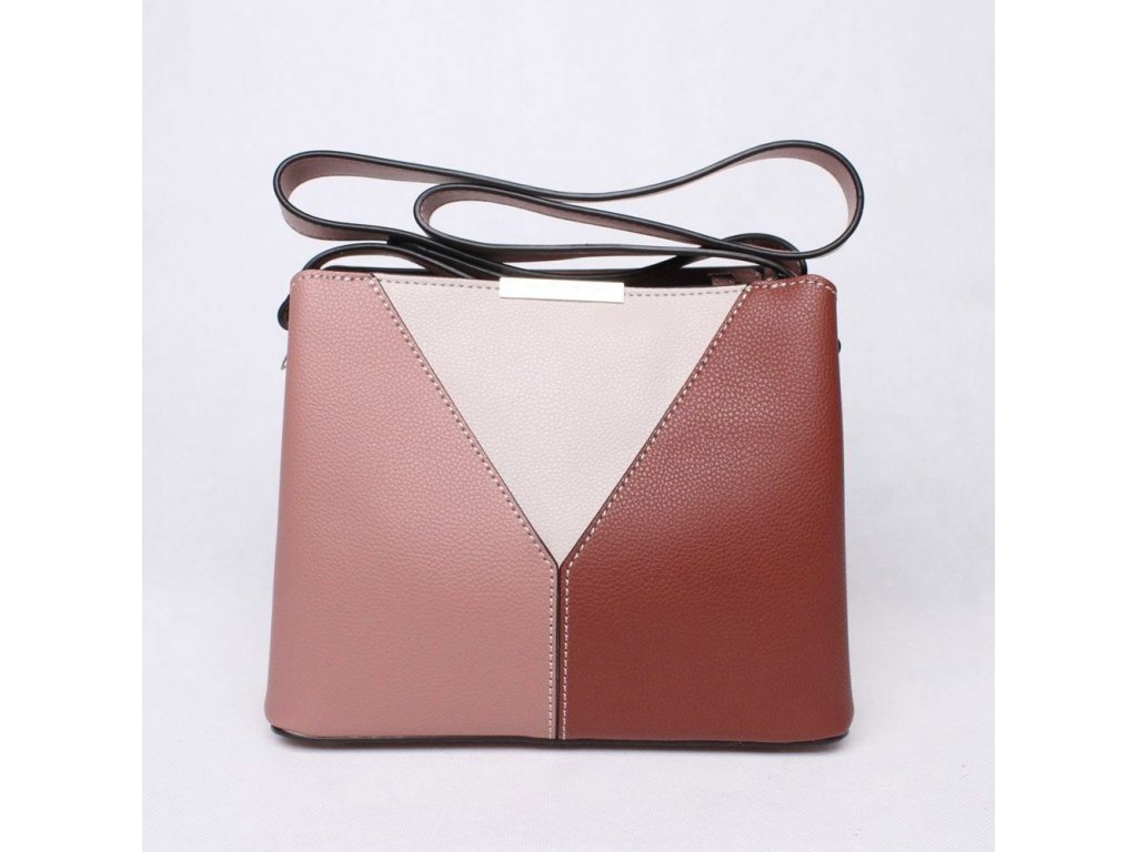 - kabelka zaujme tříbarevnou kombinací na čelní straně (růžovo-hnědo-béžovošedá), ostatní části kabelky jsou růžové