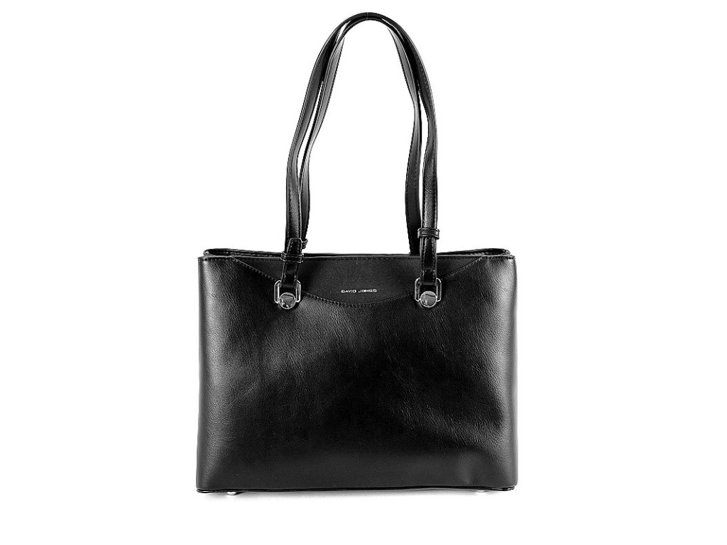 Velká dvouoddílová kabelka z příjemné syntetické kůže v černém odstínu od francouzské značka David Jones je i na formát A4.
