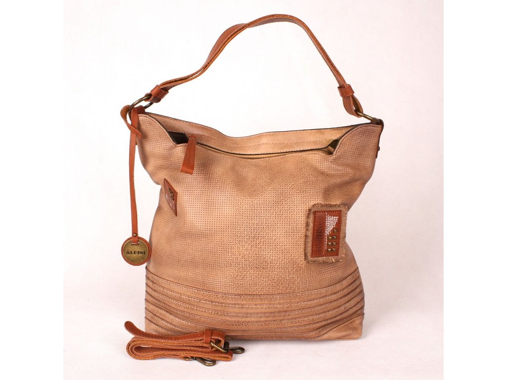 Moderní velká kabelka na rameno, ale nositelná i jako crossbody značky ALPINI s originální úpravou, jakoby "záplatami" na přední straně.