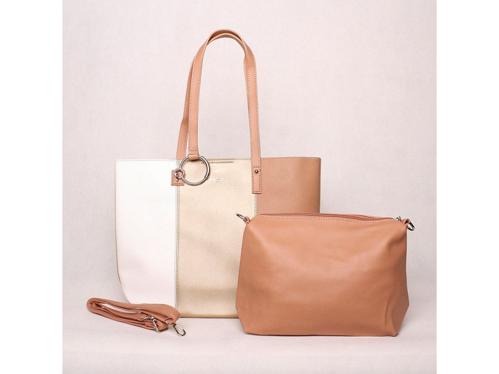 Dámská velká kabelka na rameno + kabelka etue David Jones CM5762 zlatá