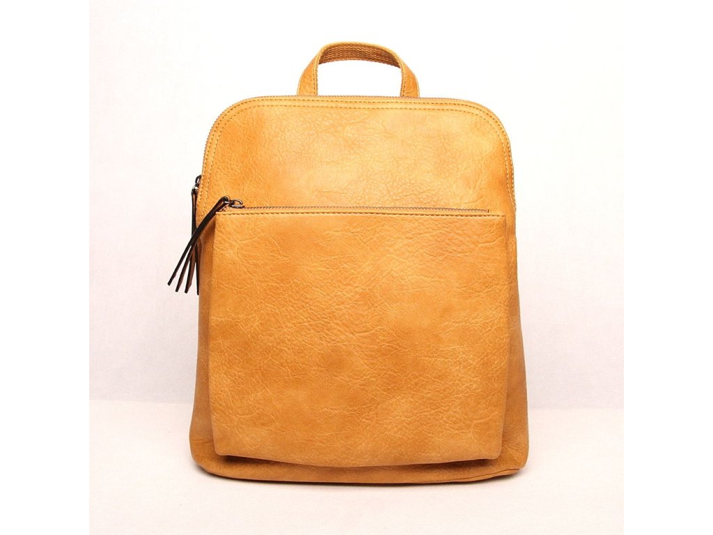 Hořčicový batoh (střední/větší velikosti) ze syntetického materiálu se díky posuvným popruhům dá nosit i jako crossbody kabelka