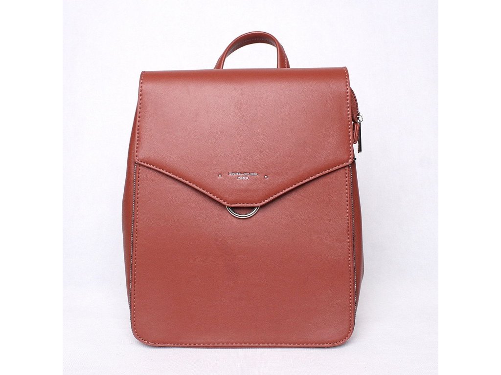 Středně velký městský hnědý batoh značky David Jones s jednoduchou přední linií v moderním provedení.