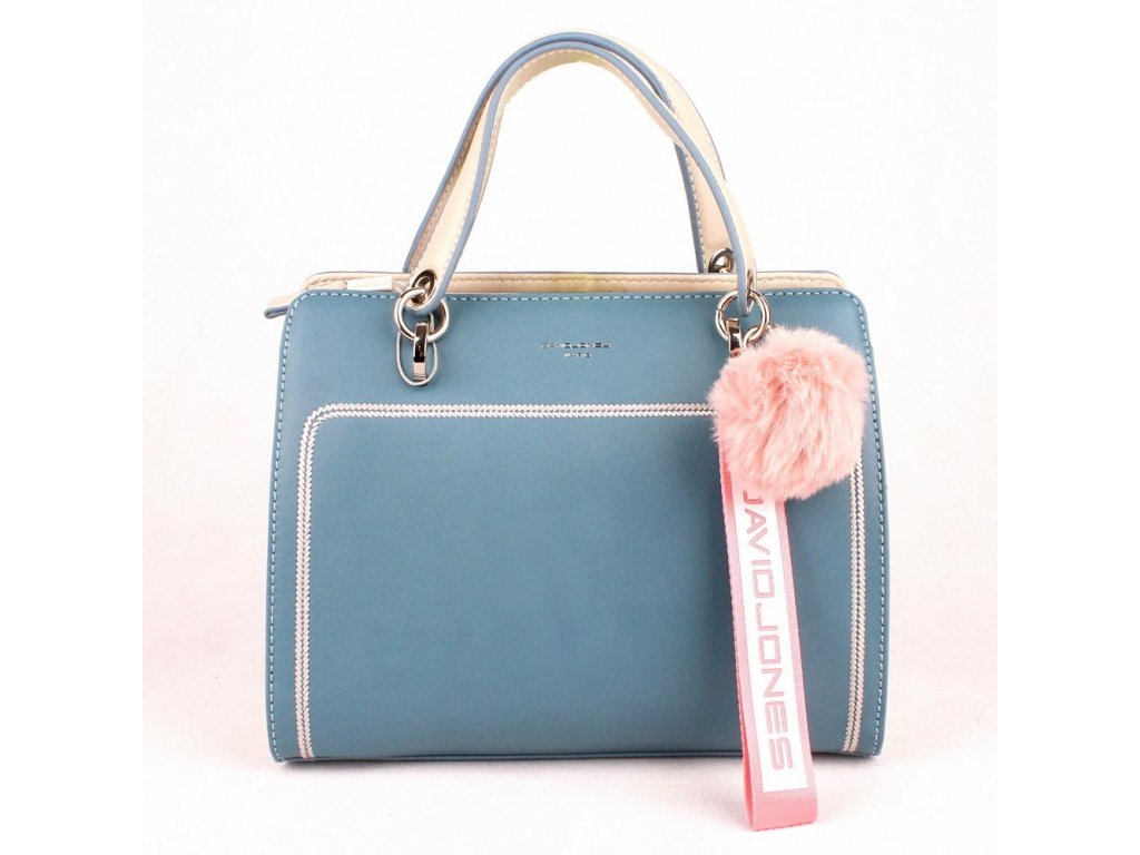Malá elegantní kabelka značky David Jones 5993-2 v tyrkysové barvě ozvláštněna moderní bambulí na uchu kabelky.