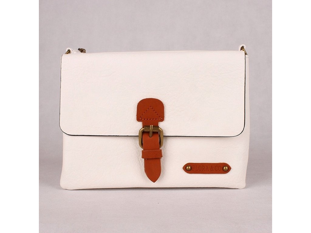 Dvouseční crossbody kabelka značky FLORA&CO H6768 v bílé barvě doplněna hnědými detaily v malé velikosti.
