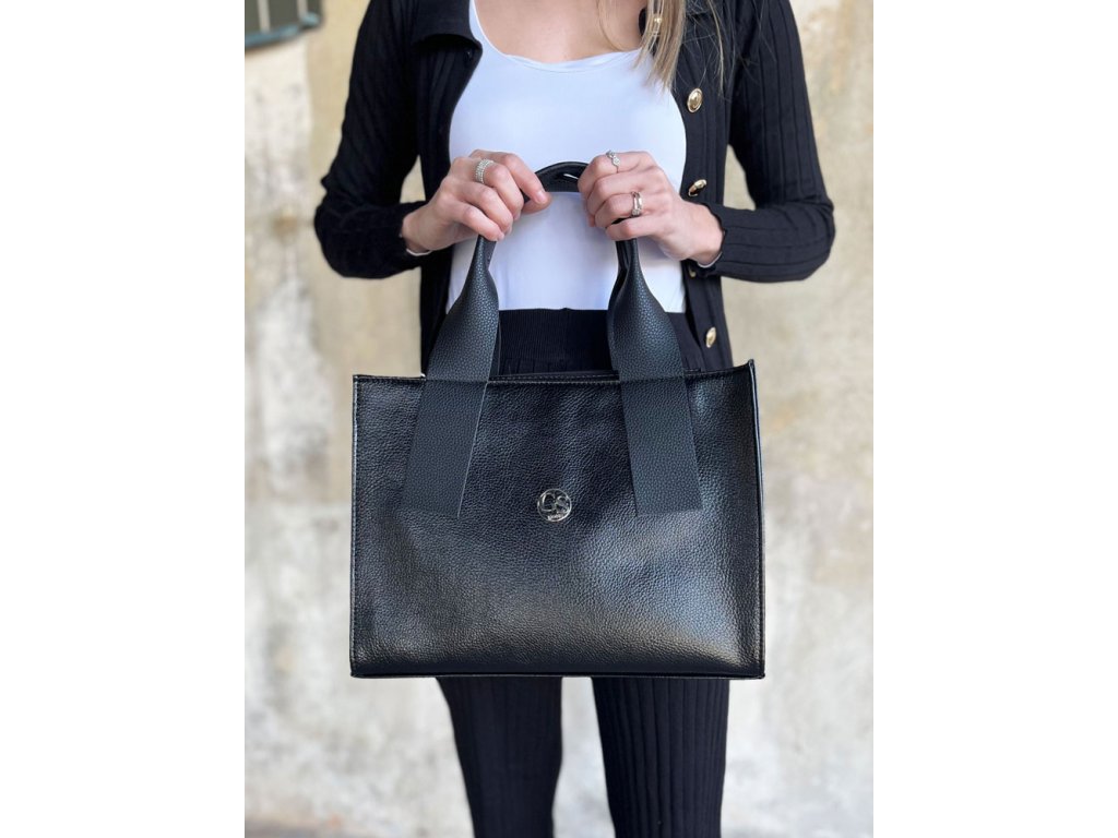 Elegantní větší černá dámská kabelka do ruky S684 GROSSO