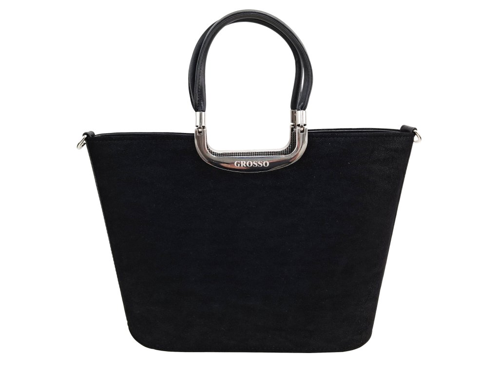 GROSSO Černá velurová elegantní kabelka do ruky S7