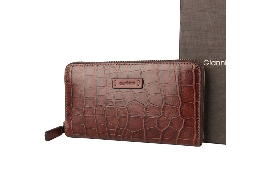 Celozipová tmavěhnědá peněženka nejvyšší kvality italské prvotřídní značky Gianni Conti.