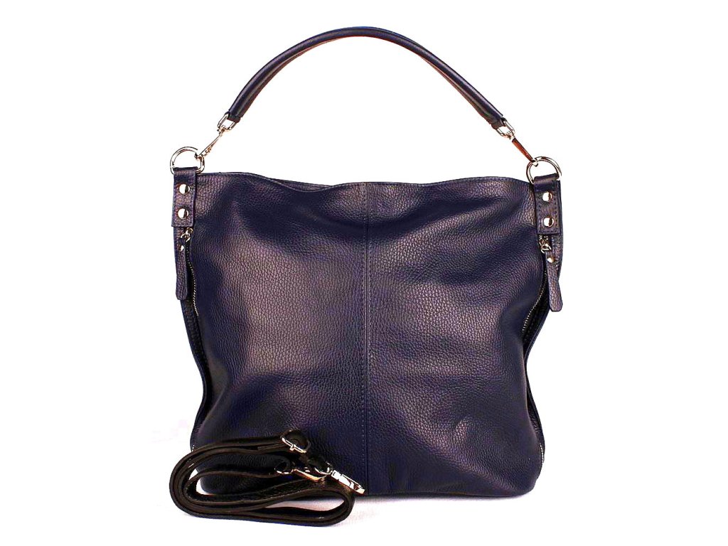 Velká tmavěmodrá kabelka na rameno. Moderní italský kvalitní kožený doplněk každé ženy.