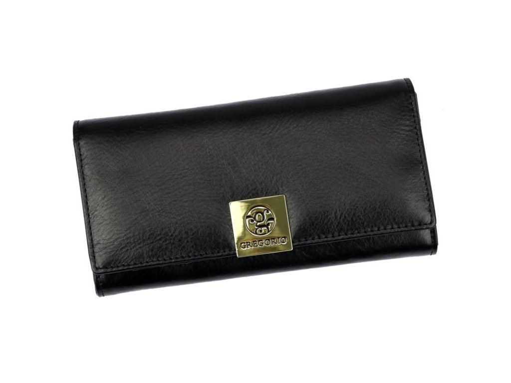 Velmi krásná černá peněženka značky Gregorio, svým vzhledem a originálním zlatým logem na čelní straně zaujme na první pohled nejednu ženu.