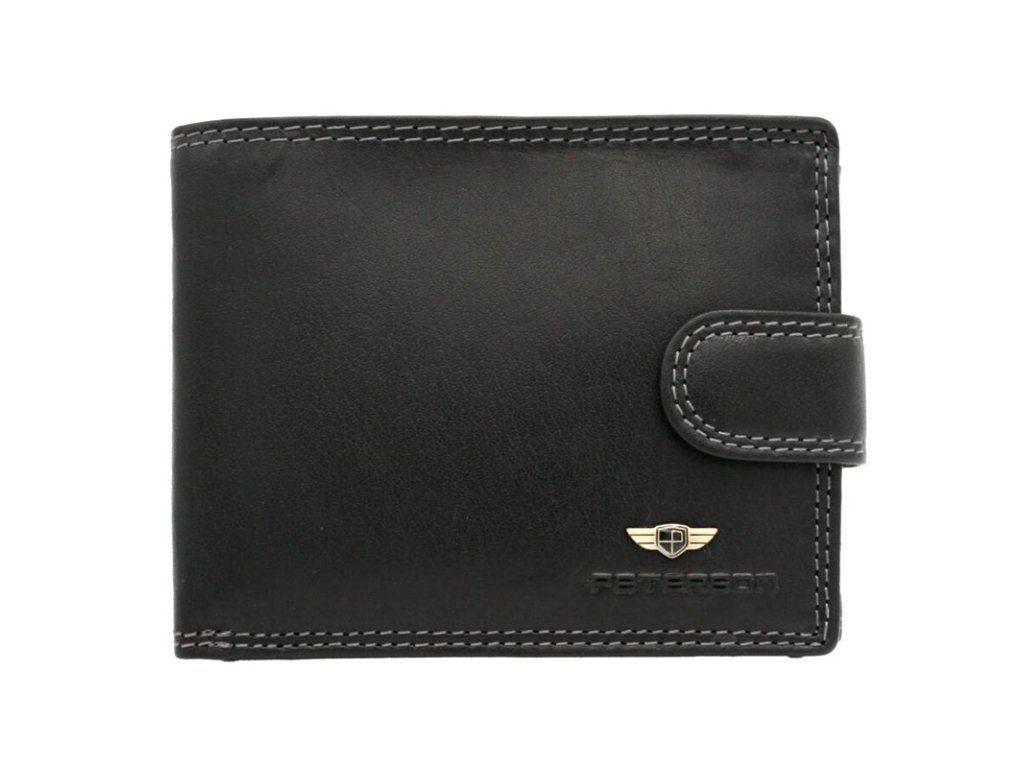 Kožená pánská hladká pevná peněženka Peterson na upínku o rozměrech 12,5 x 9,7 cm v černé barvě