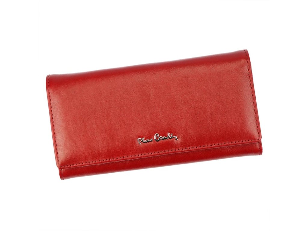 Kožená dámská pevná peněženka značky Pierre Cardin o rozměrech 18,2 x 9,3 cm v červené barvě
