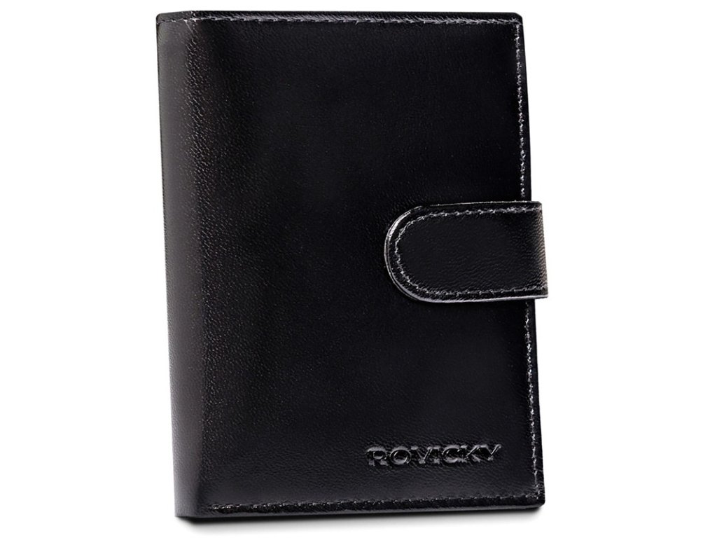 Černá kožená pánská peněženka s uzavíráním na upínku od známé značky Rovicky.