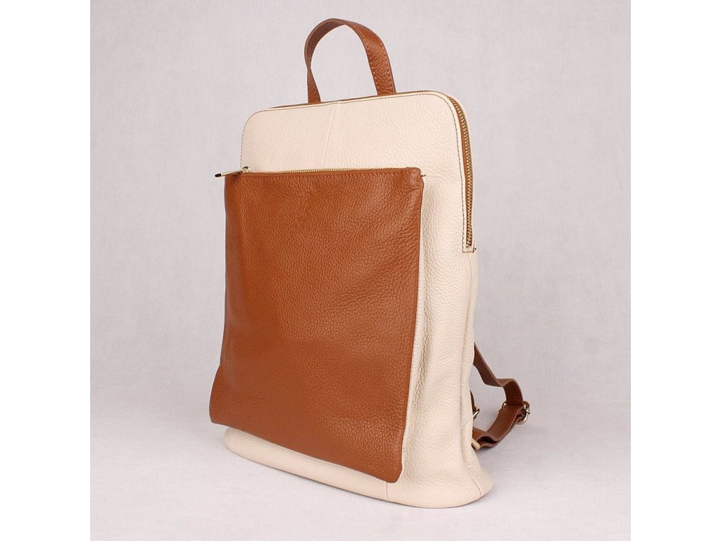 Kožený batoh/crossbody kabelka 7750 v béžovo/hnědé barvě.