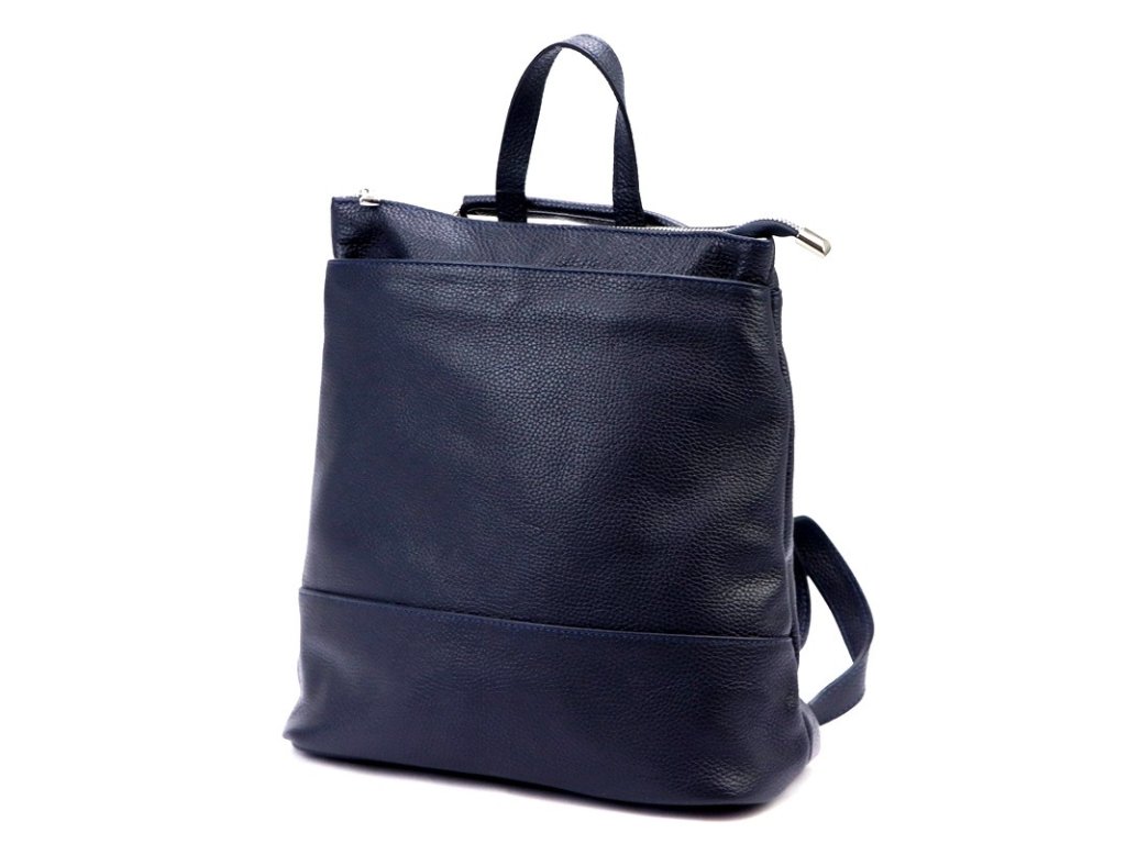Tmavěmodrý kožený batoh ideální velikosti, italské značky Luka, který pojme formát A4.
