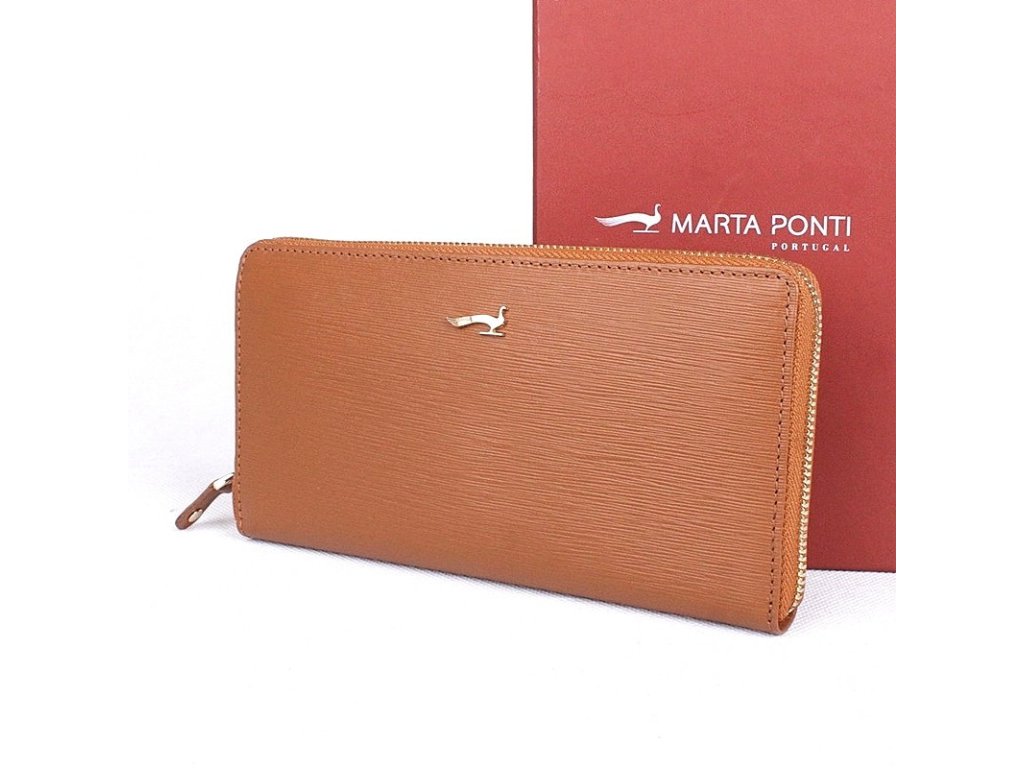 - luxusní kožená hnědá značková portugalská dámská peněženka Marta Ponti patří mezi celozipové peněženky, tedy zip se zapíná na třech stranách peněženky