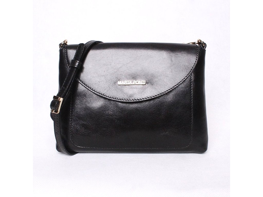 - kožená značková crossbody kabelka Marta Ponti v nádherné černé mírně leské barvě