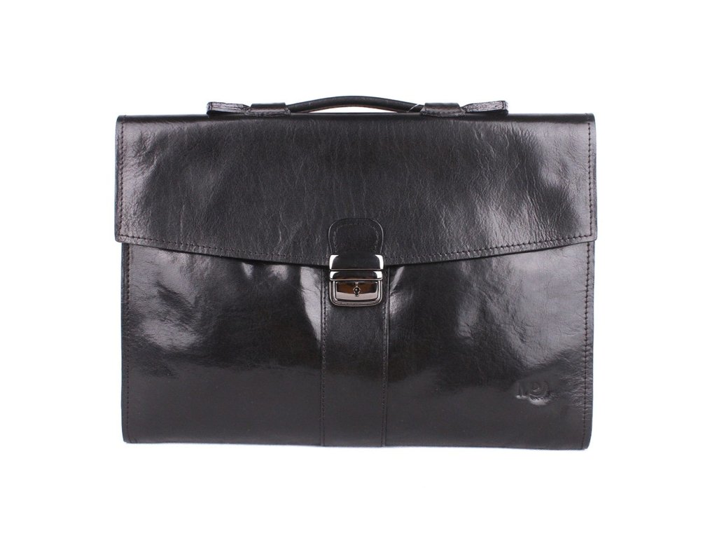 Luxusní kožená aktovka o velikosti 37 x 26,5 x 7,5 cm v černé barvě