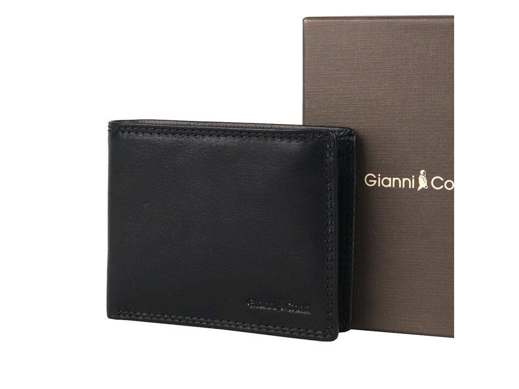 Velmi kvalitní elegantní jednoduchá kožená hladká pánská peněženka Gianni Conti v černé barvě
