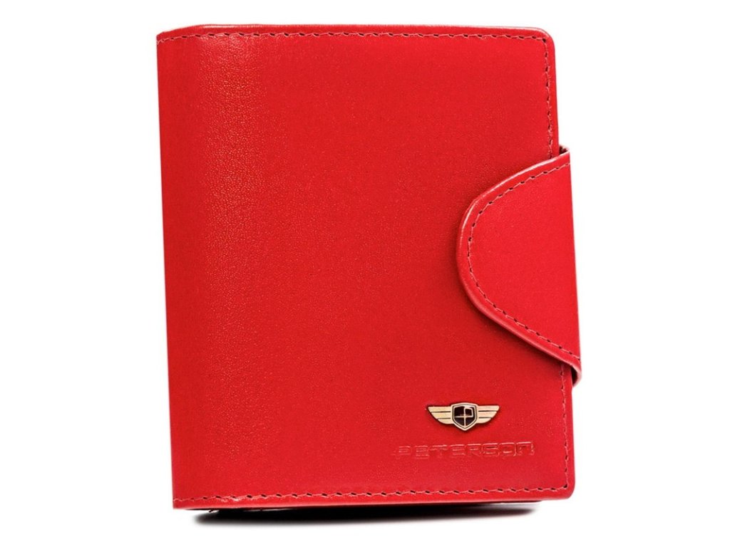 Dámská kožená červená peněženka Peterson ideálních menších rozměrů, která se uzavírá na upínku na druk.