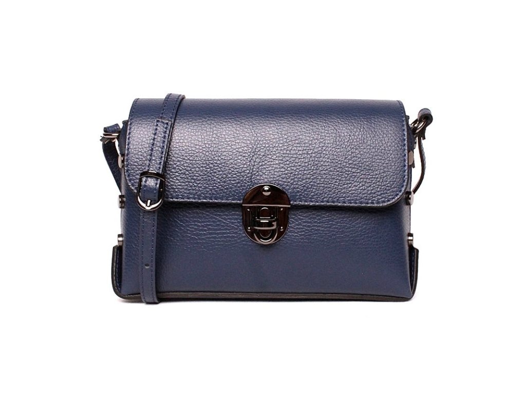 Malá pevná kožená kabelka na rameno/crossbody Vera Pelle 331 modrá