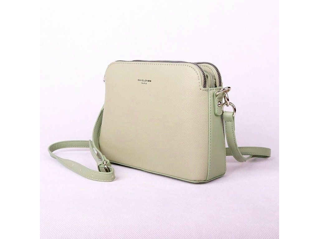 Malá pevnější tříoddílová crossbody kabelka David Jones ve světlezelené barvě