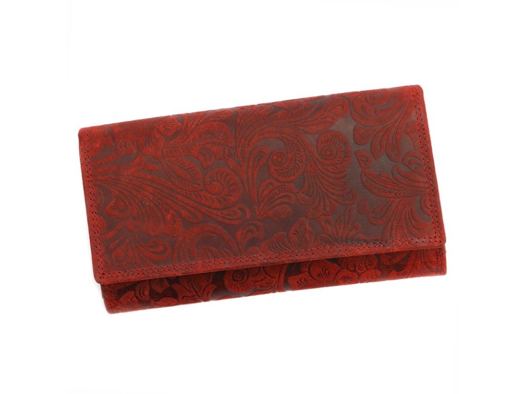 Masivní kožená peněženka Wild by Loranzo no. 632 červená s ornamenty květin