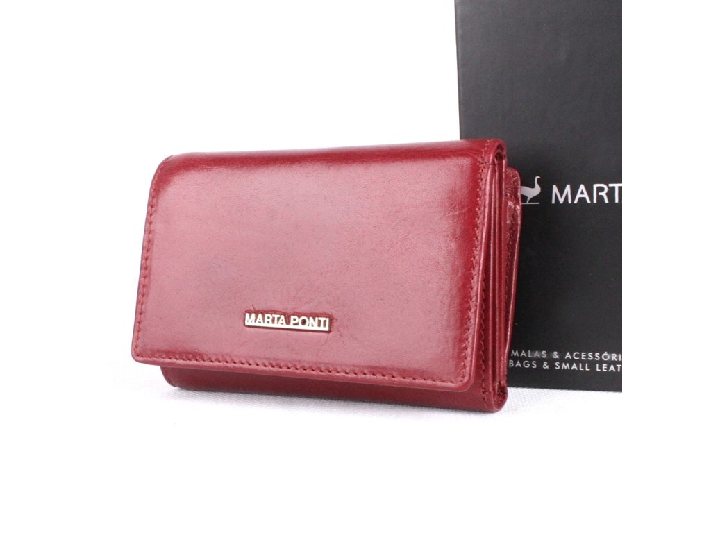 Menší kožená dámská peněženka portugalské značky Marta Ponti v tmavěčervené barvě