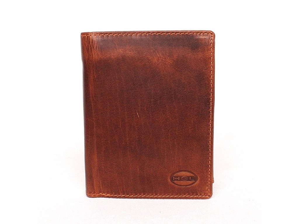 Hnědá peněženka známé německé značky HGL ve stylu "Hunter" s ochrannou vrstvou RFID a s vyraženým logem HLG na čelní straně.