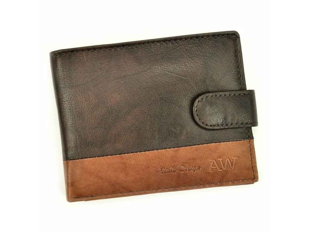 - se zajímavou barevnou kombinací vnější strany peněženky, s vyraženým nápisem Italy Desing a logem AW na čelní straně