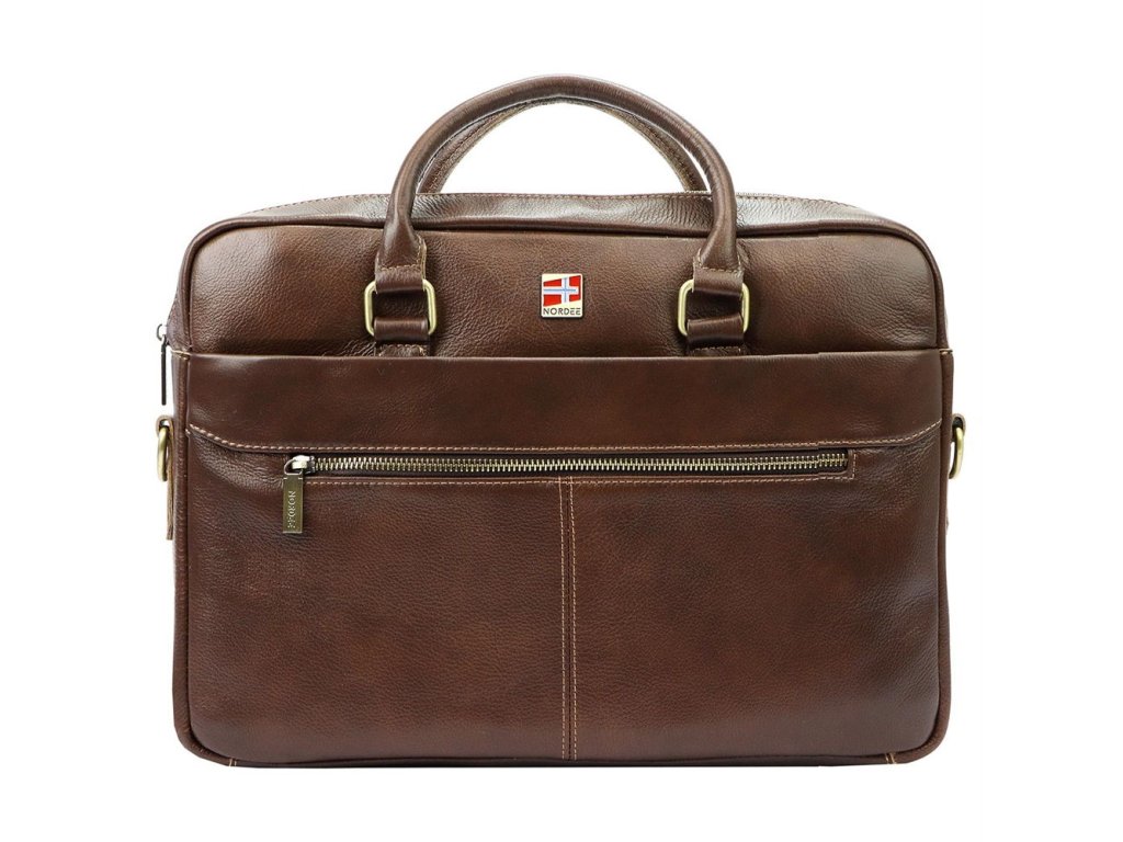 Praktická kožená pánská hnědá aktovka v ideální velikosti na formát A4 a na notebook značky Nordee.
