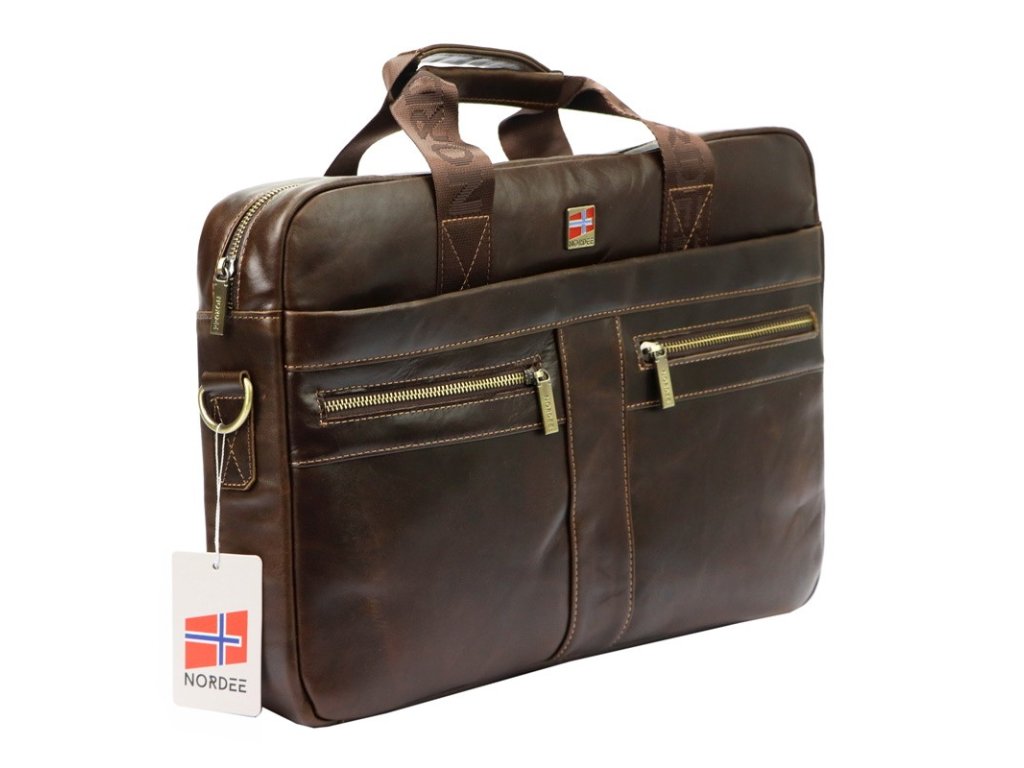 Pánská kožená business taška (aktovka) do ruky značky Nordee v krásné tmavěhnědé barvě