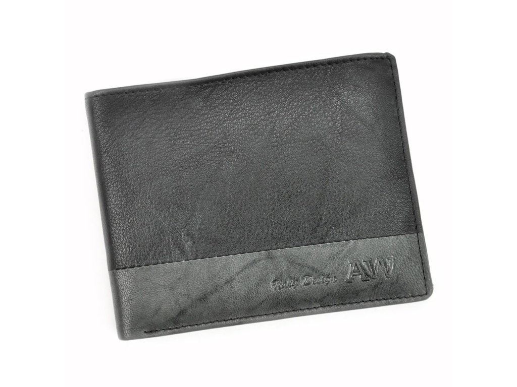 Kožená peněženka se zajímavou barevnou kombinací v níž převažuje černá je podélně orientovaná a je vybavena ochrannou vrstvou RFID.