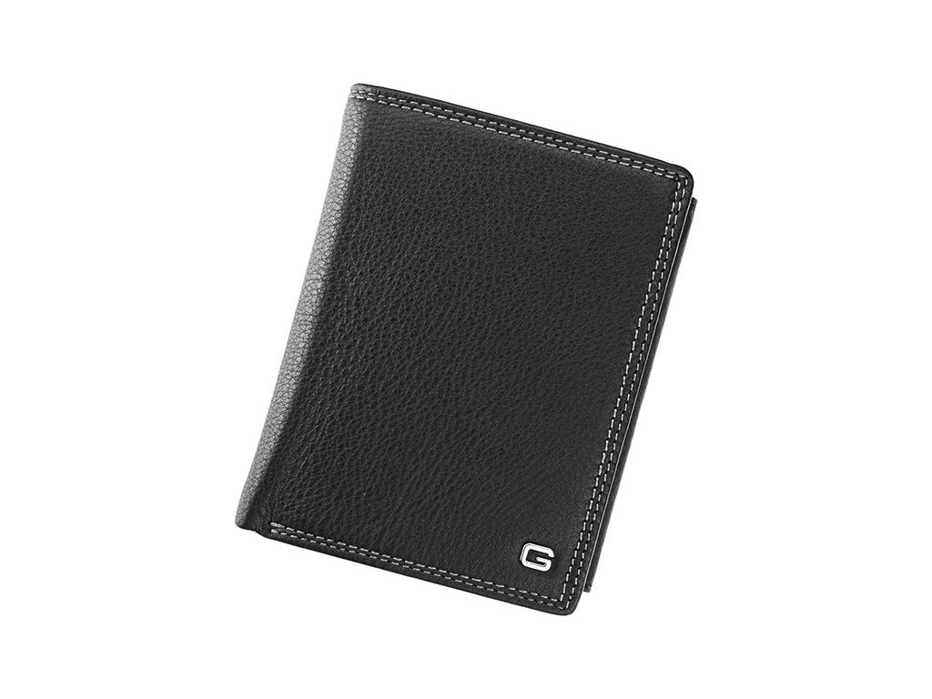 Černá kožená pánská černá peněženka Gregorio se stříbrným logem G na čelní straně peněženky.