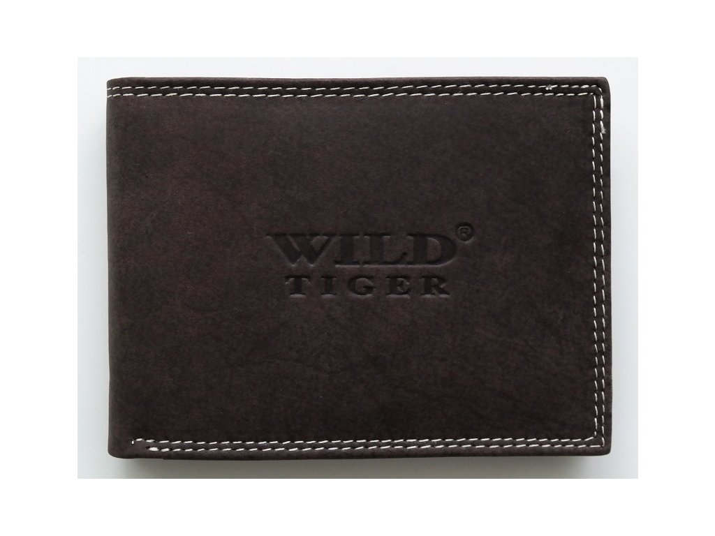 Oblíbená pánská kožená peněženka značky WILD Tiger z broušené kůže o rozměrech 12,4 x 9,5 cm.