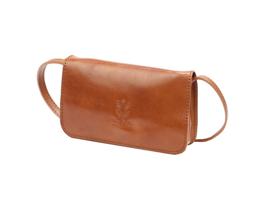 Pevná malá kožená crossbody kabelka Florence 107 světlehnědá