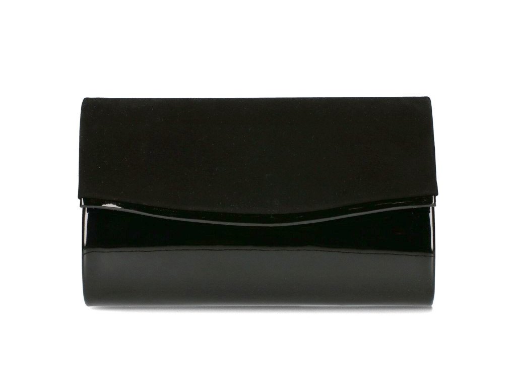 Elegantní částečně semišové pevné psaníčko v černé barvě s lesklým proužkem podél spodní hrany klopy je oblíbeným doplňkem a doprovodí ženu nejen do společnosti.