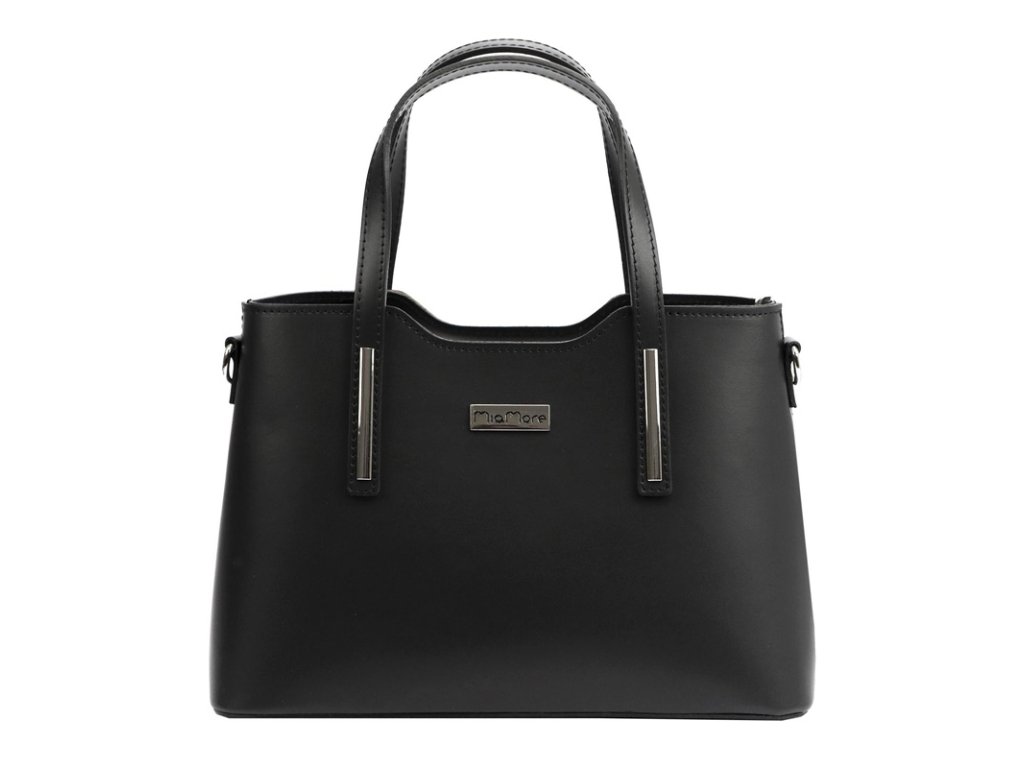Středně velká kožená kabelka do ruky značky MiaMore v černé barvě