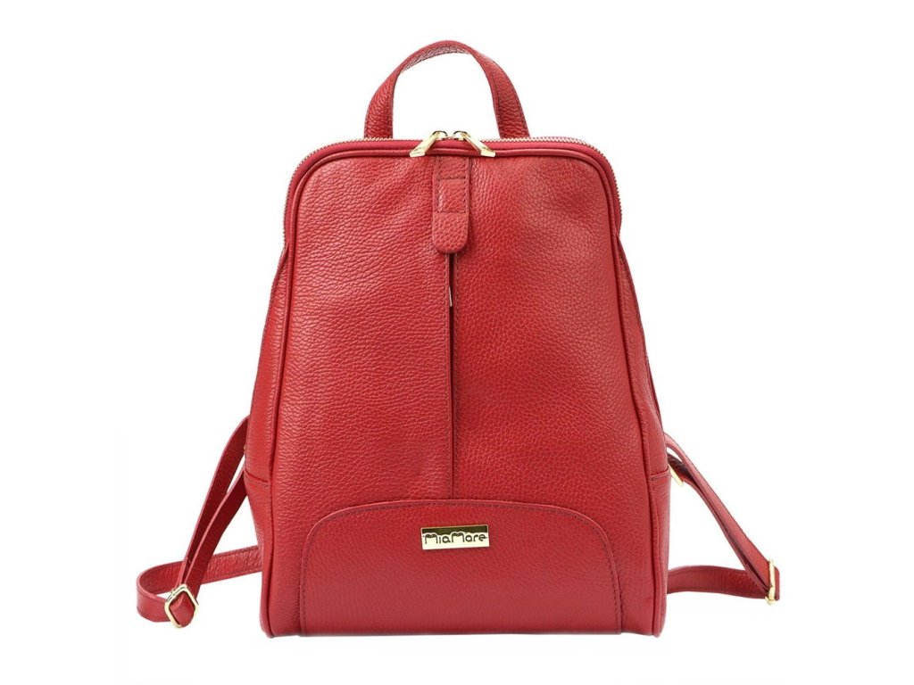 Dámský kožený batoh MiaMore o rozměrech 32 x 24 x 11 cm v červené barvě