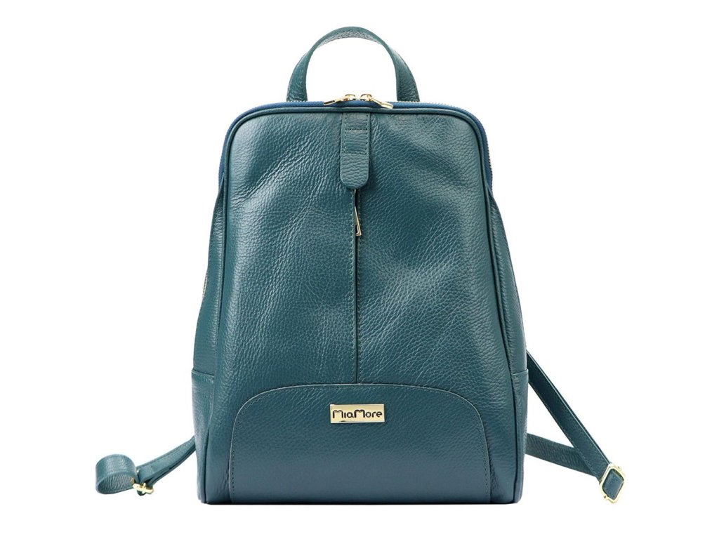 Dámský kožený batoh MiaMore o rozměrech 32 x 24 x 11 cm v tmavě tyrkysové barvě