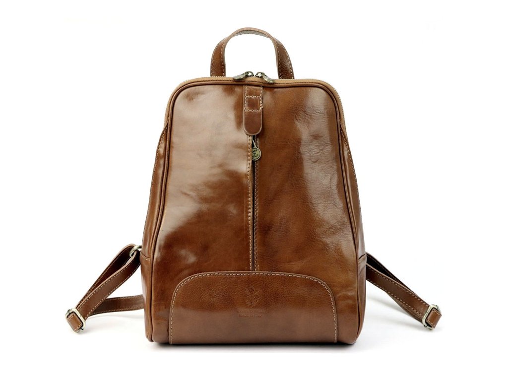 Střední dámský kožený pevný batoh Florence 21, obsah cca. 7 l hnědý
