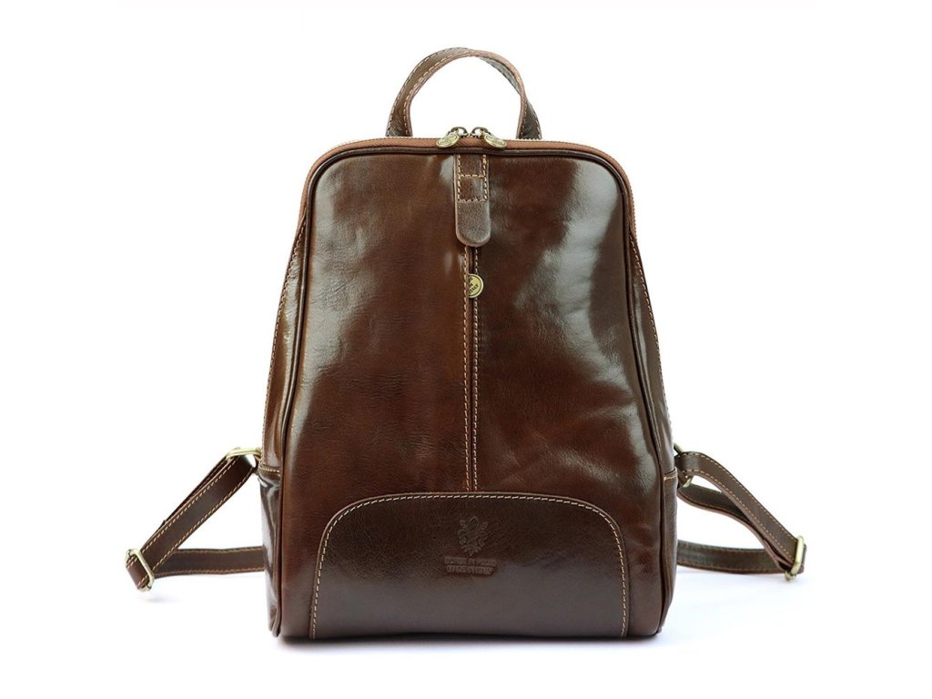 Střední dámský kožený pevný batoh Florence 21, obsah cca. 7 l tmavěhnědý