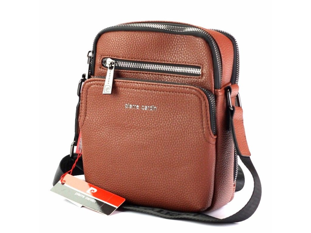 Středně velká pánská crossbody taška v hnědé barvě Pierre Cardin, která je velmi prakticky rozdělena na dvě samostatné sekce.