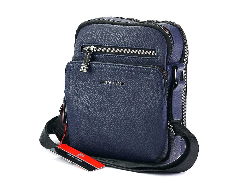 Středně velká pánská crossbody taška v modré barvě Pierre Cardin, která je velmi prakticky rozdělena na dvě samostatné sekce.