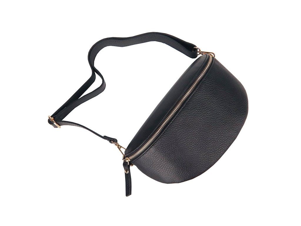Kožená dámská ledvinka italské výroby Borse in Pelle o rozměrech 27 x 14 x 8,5 cm v černé barvě