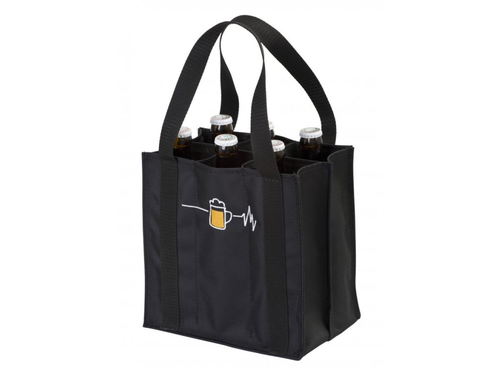 Taška pro 6 lahví piva o obsahu 0,5 l v černé barvě.