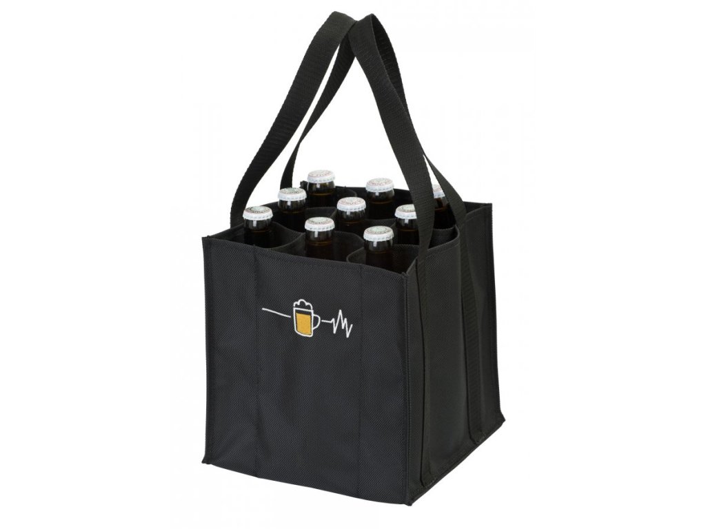 Taška pro 9 lahví piva o obsahu 0,5 l v černé barvě.