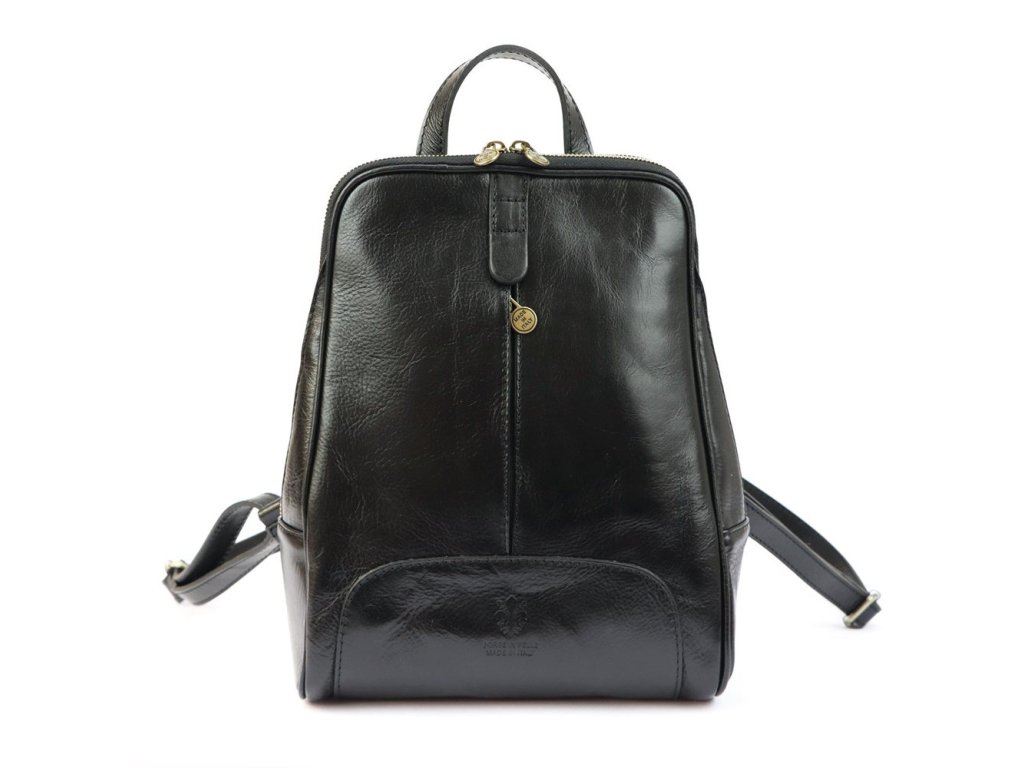 Dámský kožený batoh o rozměrech 24 x 32 x 12 cm v černé barvě