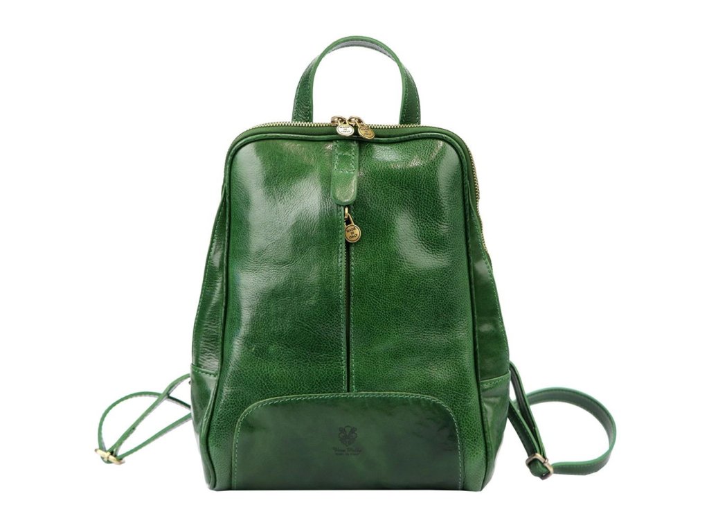 třední dámský kožený pevný batoh Florence 21, obsah cca. 7 tmavězelený