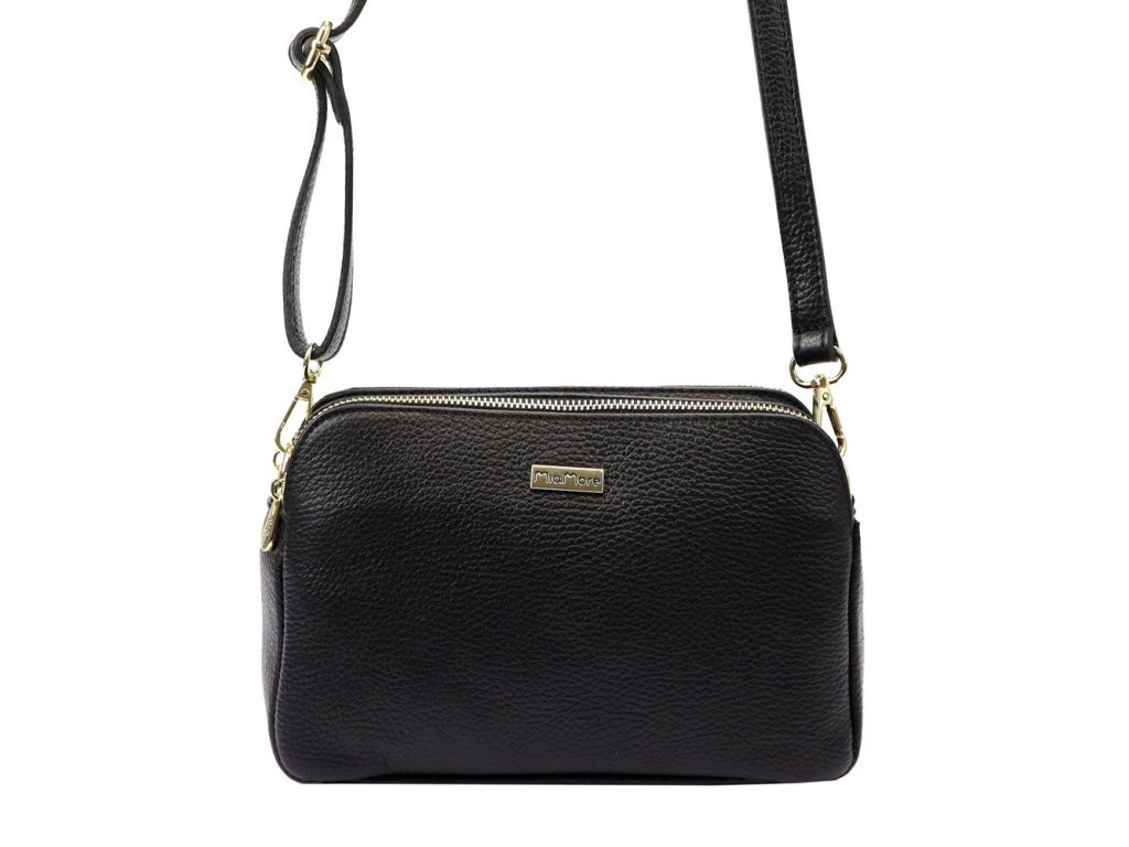 Tříoddílová malá kožená kabelka MiaMore (Itálie) v černé barvě
